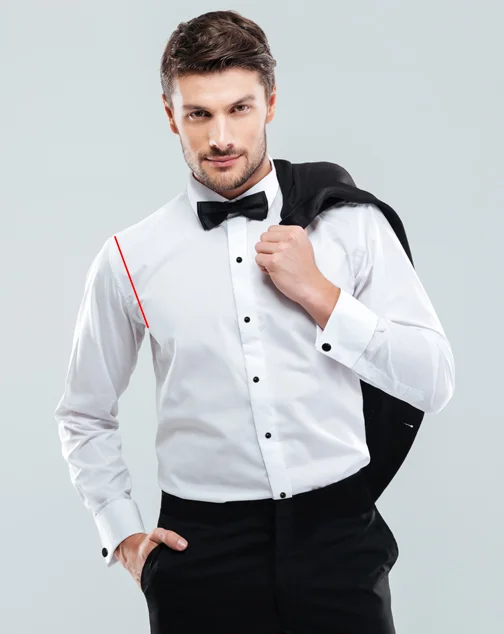 Our slim fit shirts have exact length sleeves, so if your customer has a 35" sleeve, the shirt you get will be 35". This exact measurement will reduce that excess baggage and make it easier for you to give your customer their best look.
